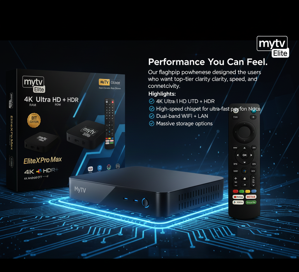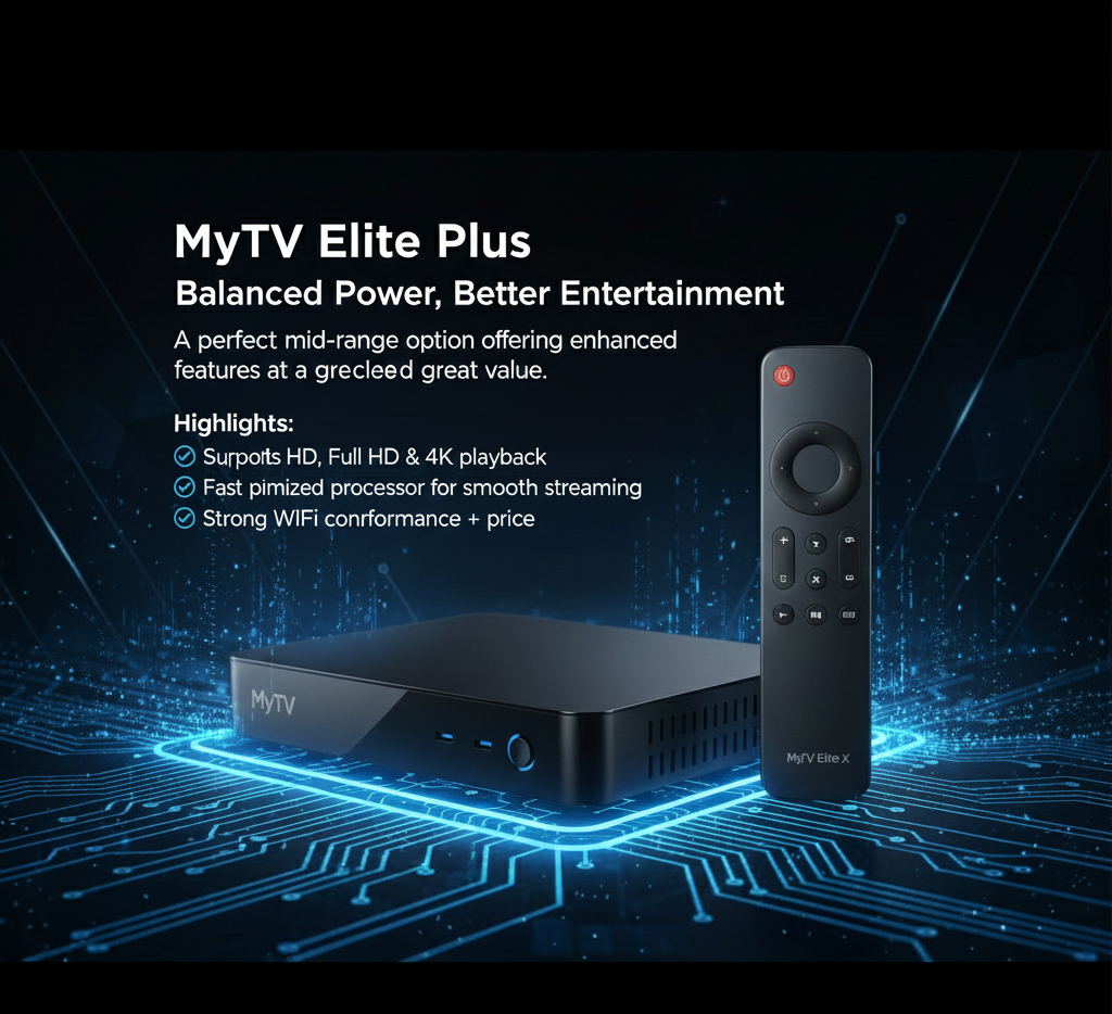 MyTV Elite is a premium entertainment brand offering high-performance TV set-top boxes designed for smooth streaming, superior picture quality, and reliable connectivity.
